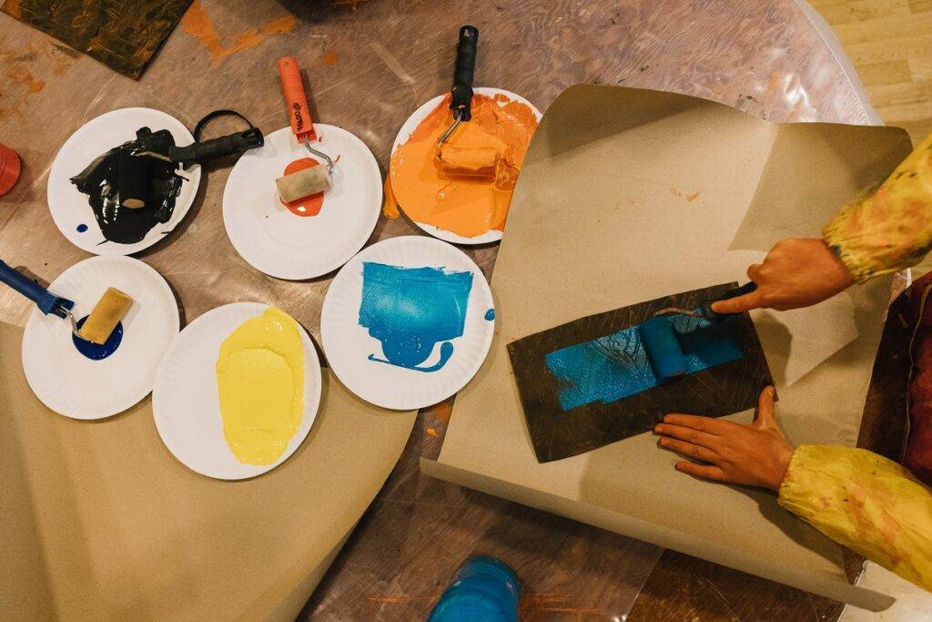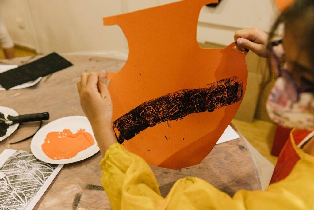 Θα νιώσουμε την υφή της μπογιάς στα χέρια και τα πόδια και θα ανακαλύψουμε τα ιδιαίτερα σημάδια που αφήνουν καθημερινά αντικείμενα σε επιφάνειες όπως το χαρτί.