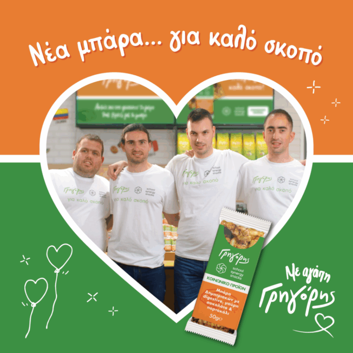 Πίσω από αυτή την πρωτοποριακή δράση βρίσκεται η συνεργασία που ξεκίνησε, πριν από δύο χρόνια, ο Γρηγόρης με τη School Synergy Snacks. Μια Κοινωνική Συνεταιριστική Επιχείρηση Ένταξης Ευάλωτων Κοινωνικών Ομάδων (Κοιν.Σ.Επ.), που υποστηρίζει την επαγγελματική αποκατάσταση νέων με νοητική αναπηρία και άλλες αναπτυξιακές διαταραχές, μέσα από δομημένες ευκαιρίες απασχόλησης.
