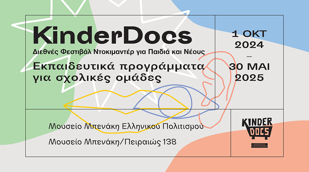 Για 9η χρονιά, βραβευμένα ντοκιμαντέρ από όλο τον κόσμο πλαισιώνονται από εκπαιδευτικά προγράμματα και δημιουργικά εργαστήρια για Δ΄ Δημοτικού – Γ΄ Λυκείου. Το KinderDocs δημιουργεί κοινές εμπειρίες, αφορμές για συζήτηση, δράση και αλληλεπίδραση, και αναπτύσσει δεξιότητες για τον 21ο αιώνα.